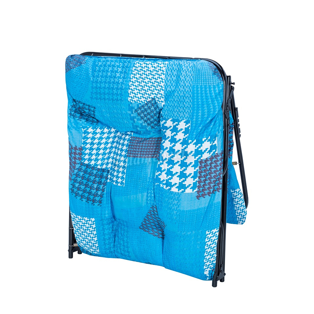 Раскладная кровать 207 оснащена регулируемым подголовником, с помощью которого возможно подобрать идеальный уровень наклона и сделать отдых максимально удобным и комфортным. Основание кровати – ткань ПВХ, в комплекте идет матрас толщиной 6 см. с поролоновым наполнением. Стальной прочный каркас обеспечивает выдерживаемую нагрузку до 120 кг.