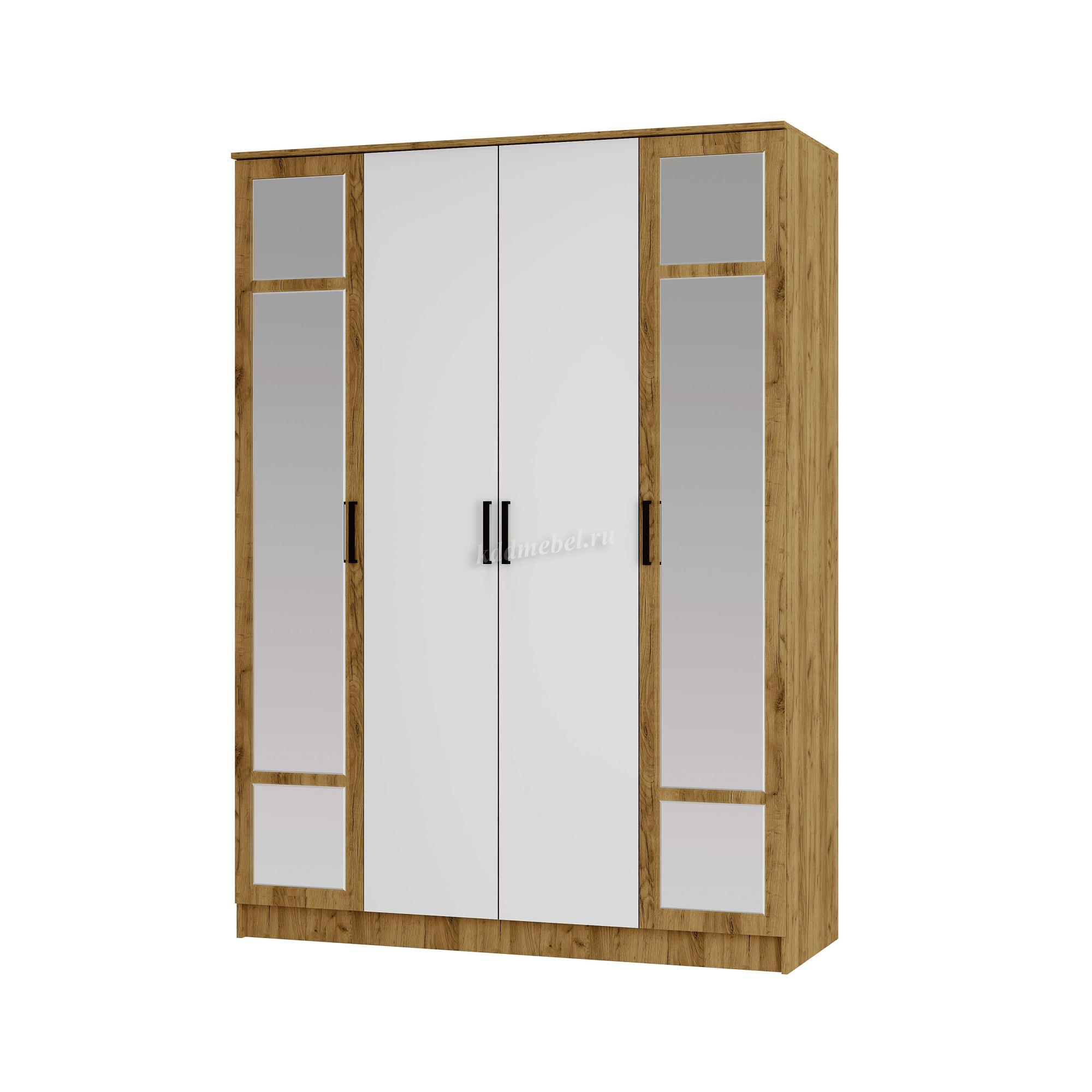 Шкаф распашной Ирис 4-х створчатый (Дуб крафт золото/Белый)