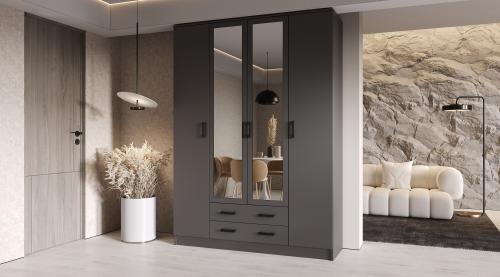 Помимо своей большой функциональности, четырехдверный шкаф Квадро отлично впишется в любое помещение Вашей квартиры либо дома, ведь у него в наличии 2 больших зеркала закрепленных на центральных дверях.