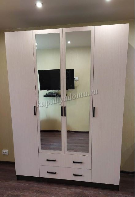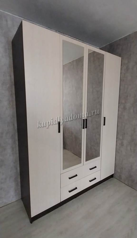 • Шкаф четырехдверный с зеркалом Беатрис с полками (Палермо/Латте/Велюр)